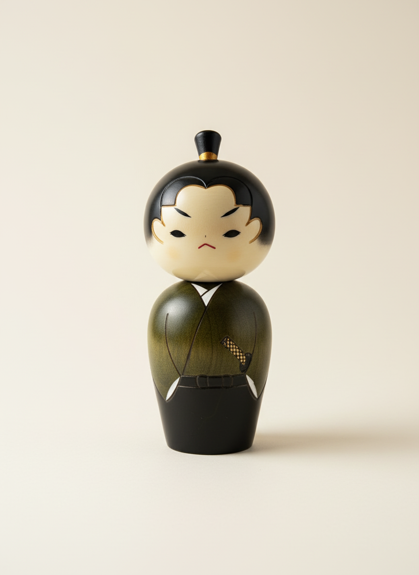 Poupée Kokeshi Traditionnelle « Wakasamurai » – Le Jeune Samouraï